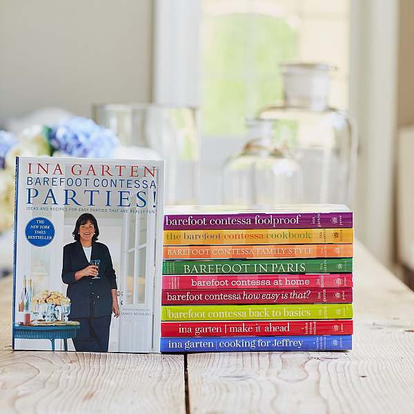Ina has packed Barefoot Contessa Parties! with plans for pulling off parties like a pro, stories about her own parties, and tips on assembling food (rather than cooking everything) and organizing like a caterer. In the spring you can invite your friends to a party where they all make their own pizzas. Come summer, it’s into the garden for a lunch with grilled lamb and pita sandwiches that guests assemble themselves. In the autumn, when it’s not Thanksgiving, Ina roasts a fresh turkey, which her friends enjoy with Popovers and a creamy Spinach Gratin. And on a snowy winter’s day, everyone is invited for a lunch buffet with Seafood Chowder and Butternut Squash and Apple Soup.