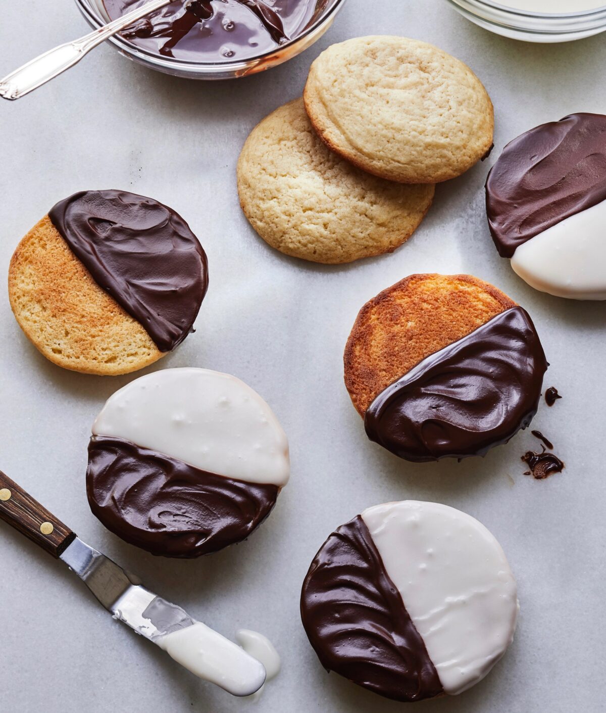 Homemade Black & White Cookies are one of my all-time favorite treats because they’re really more like decadent, snack-sized cakes. The best part is that they are glazed with both chocolate AND vanilla icing so you don’t have to choose between the two. And, once you’ve had them fresh out of the oven, you’ll never go back to store-bought cookies again! This is MODERN COMFORT FOOD at its best – old-fashioned flavor but totally modern and delicious.
