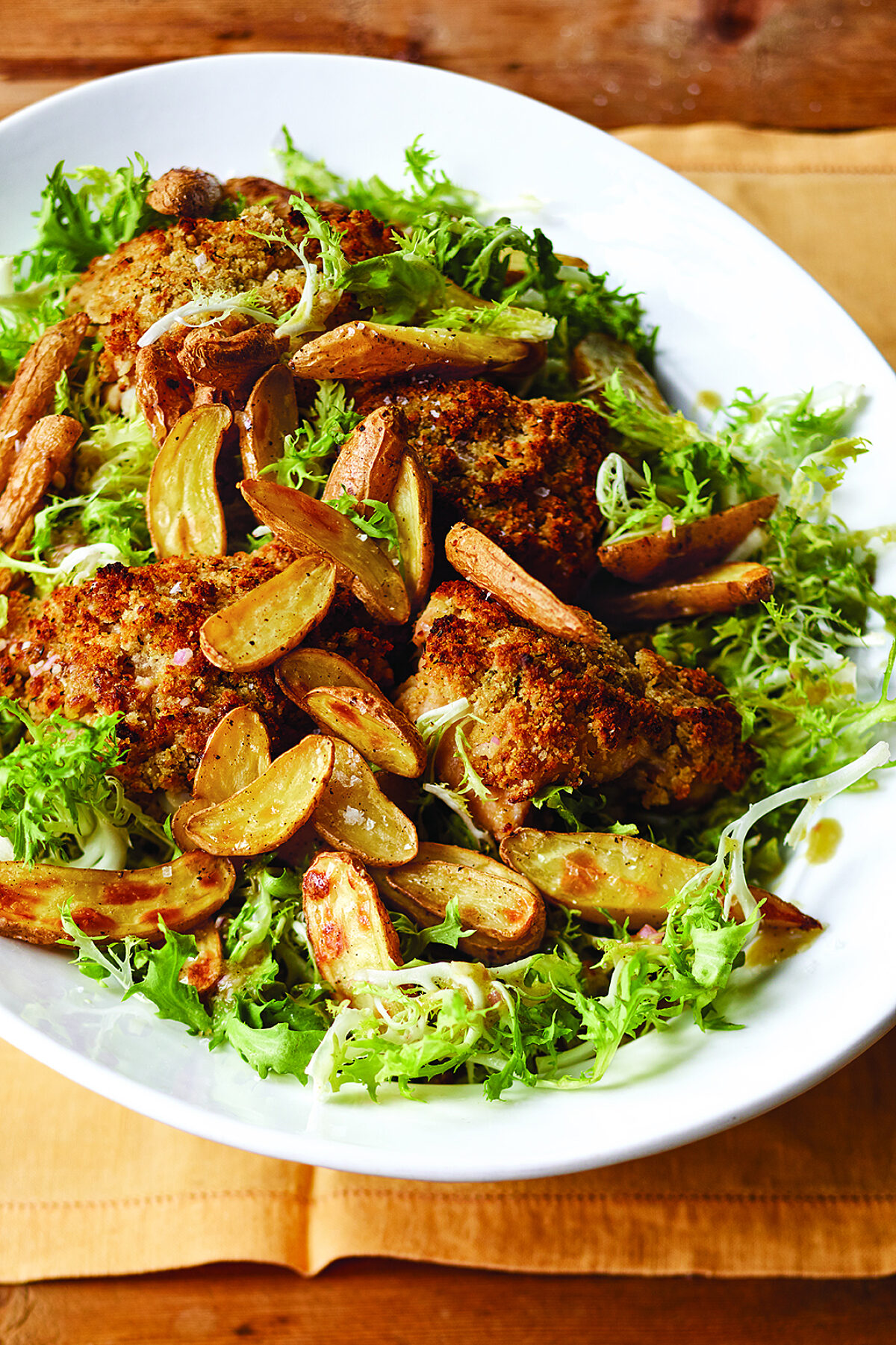 I’m so excited to share one of my favorite recipes from my new book, Cook Like a Pro! This one-dish dinner has everything I want – tender mustard chicken with a crunchy panko crust, roasted fingerling potatoes, and a crisp, cold frisée salad with plenty of mustardy vinaigrette. I could eat this for dinner every night! Hope you love it too! Click here for my Crispy Mustard Chicken & Frisée recipe.