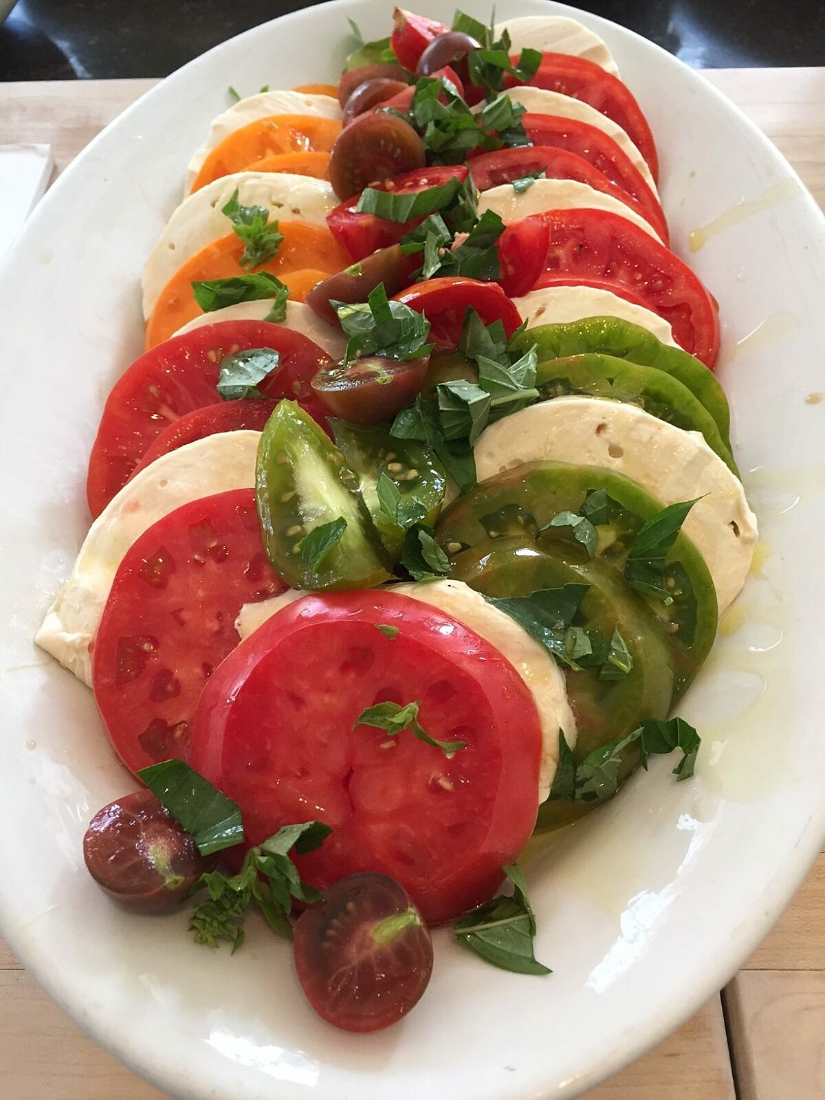 By using colorful heirloom tomatoes, I turned a simple Caprese salad into a gorgeous side dish! I use big tomatoes, cherry tomatoes and everything in between, plus fresh, pillowy mozzarella and lots of basil. Click here for the recipe!
