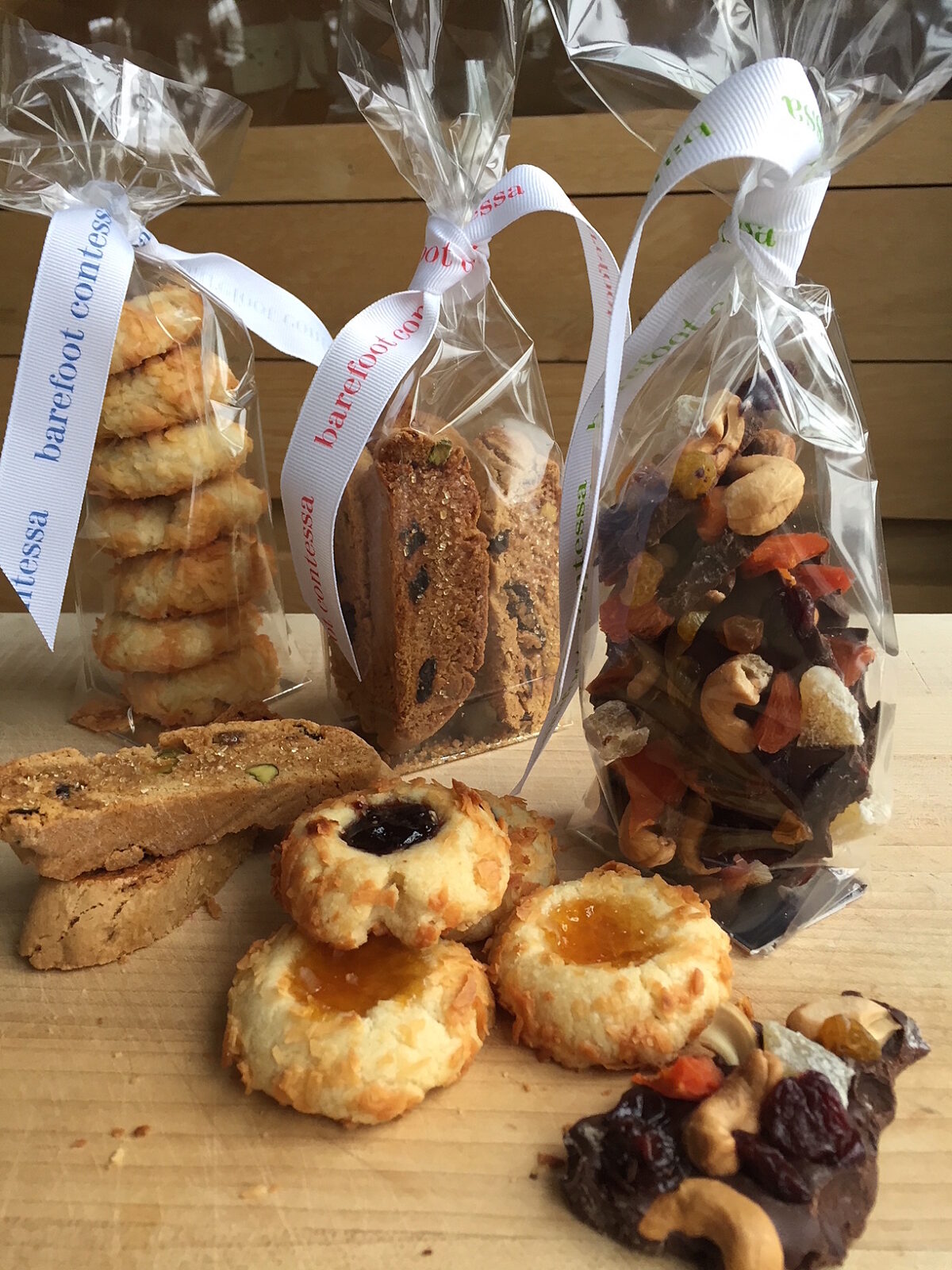 When someone goes to the enormous trouble of throwing a holiday party, I like to show my appreciation by bringing something homemade as a hostess gift. Instead of the usual bottle of wine, I like to make Jam Thumbprint Cookies, Cherry Pistachio Biscotti or French Chocolate Bark, beautifully wrapped in glassine bags and tied up with ribbons. (I buy glassine bags from Cassandra's Kitchen.) Who wouldn't like to receive that?? Happy Holidays everyone!!