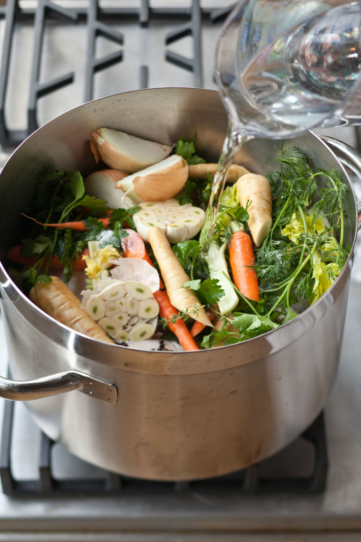 There’s nothing more healing after the craziness of the holidays than a big bowl of homemade soup, especially when it’s made with Homemade Chicken Stock. When it’s freezing cold outside and I’m spending the day at home, I fill a huge pot with chickens, onions, carrots, celery, garlic, fresh herbs, and water and let the stock simmer away for four hours. Not only does the house smell wonderful but I end up with six or seven quarts of delicious stock (it’s so good we call it “liquid gold!”) to use in soups and stews for the next few months. It’s so easy to make, and you won't believe how flavorful it is compared to store-bought stock.