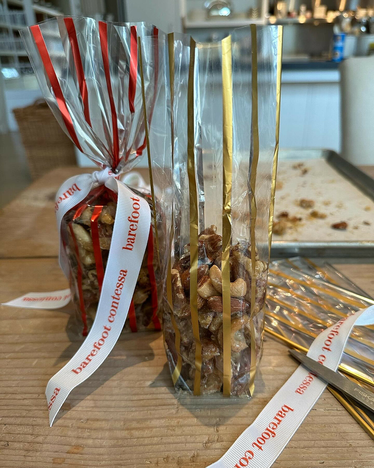When you’re going to holiday parties, Salted Caramel Nuts are a great hostess gift. You can make a big batch, allow them to cool completely, and pack them in striped bags! You can get these bags from Cassandra's Kitchen.
