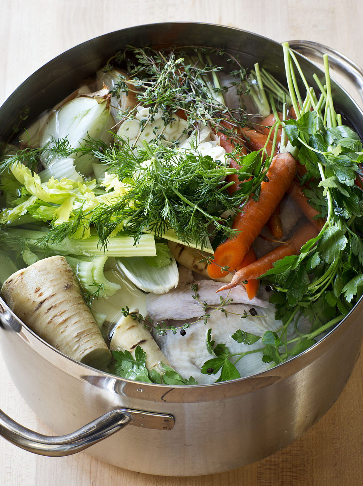 On a cold winter day, I love to make a big pot of chicken stock. It not only makes the house smell great, but I also have good homemade stock for Chicken Pot Pie Soup or Winter Minestrone. Nothing in a can tastes as good! You can store stock in quarts or half quarts for up to 4 months in the freezer.