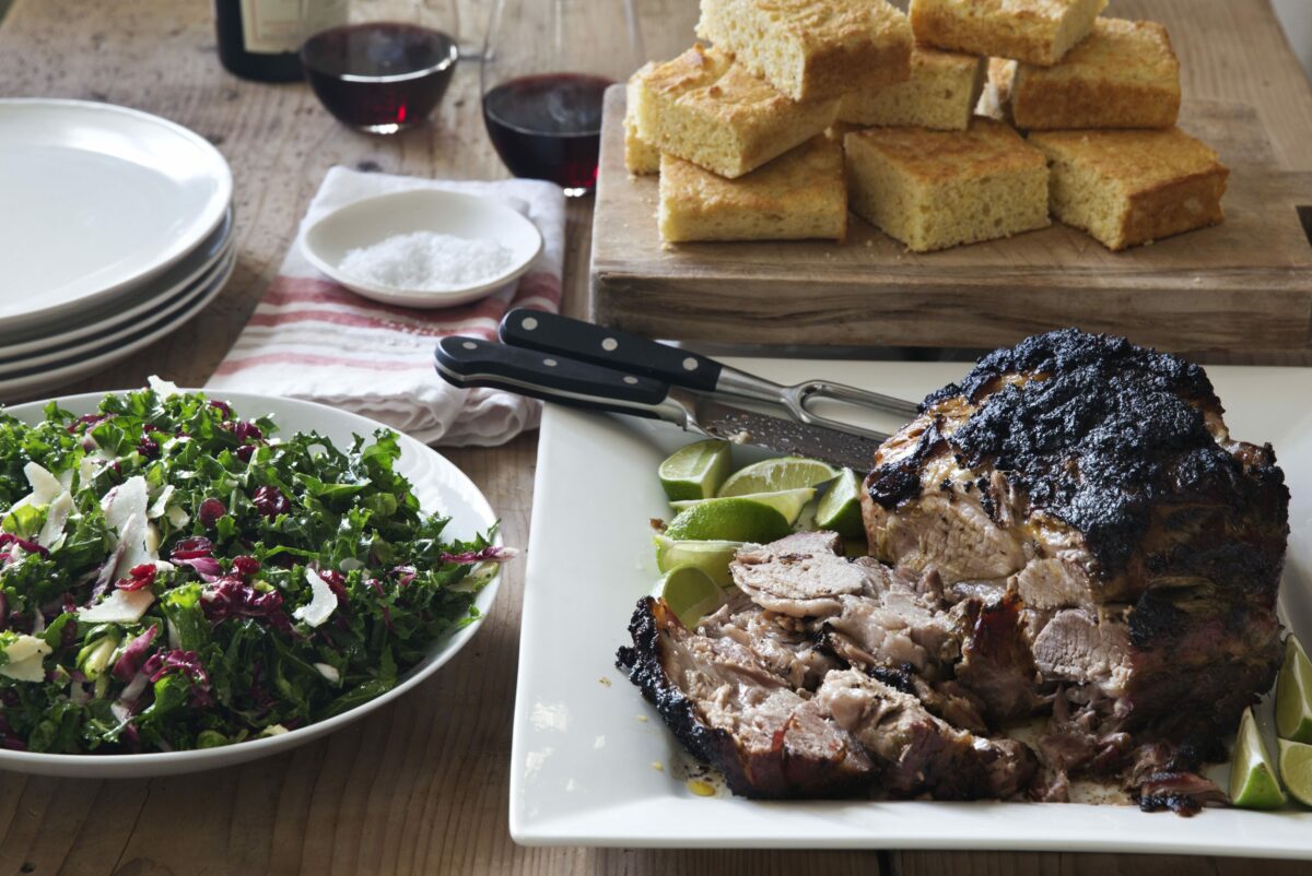 We get a lot of requests for help with party menus and so I put one together for you to try for the holidays. It’s Slow-Roasted Spiced Pork with a crisp Winter Slaw and Sour Cream Corn Bread to sop up all the delicious flavors. This pork is slow-roasted for 6-8 hours, but it’s a good thing because you won’t be running around prepping dinner just before! Happy Holidays to everyone!