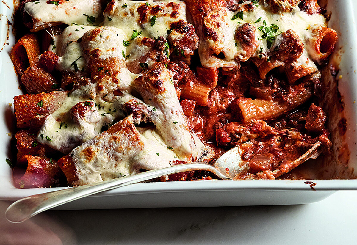 We’re all a little cranky these days because it’s winter, it gets dark early, and we’ve been dealing with the virus for so long. This is when I crave a big bowl of stew or a pan of cheesy baked pasta. Fortunately, with my Baked Rigatoni with Lamb Ragù, I don’t have to choose because it’s both!