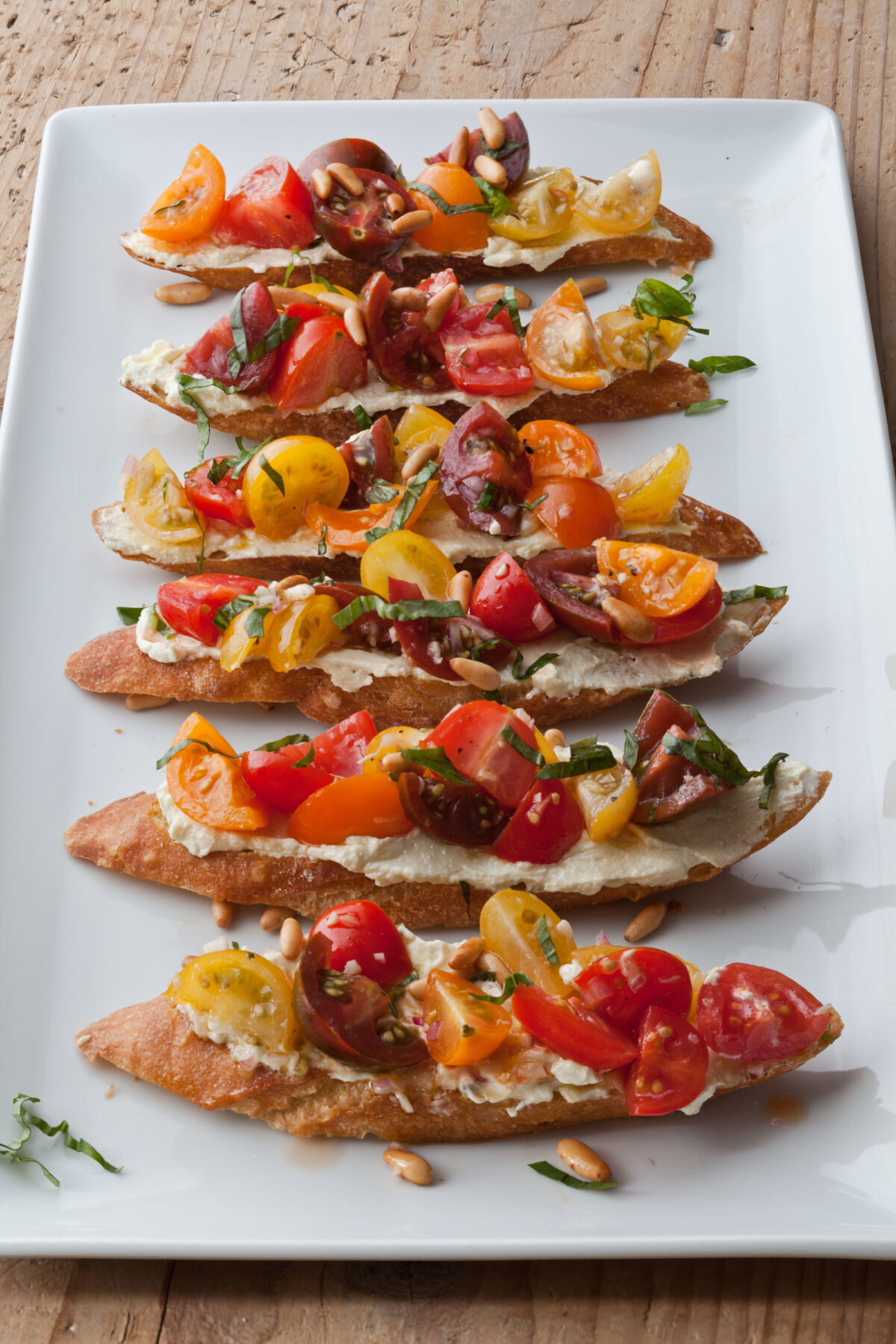 Tomato Crostini with Whipped Feta is the perfect summer appetizer – crisp toasts slathered with creamy, lemony whipped feta and topped with sweet ripe summer tomatoes & basil. I wish tomato season would never end!!