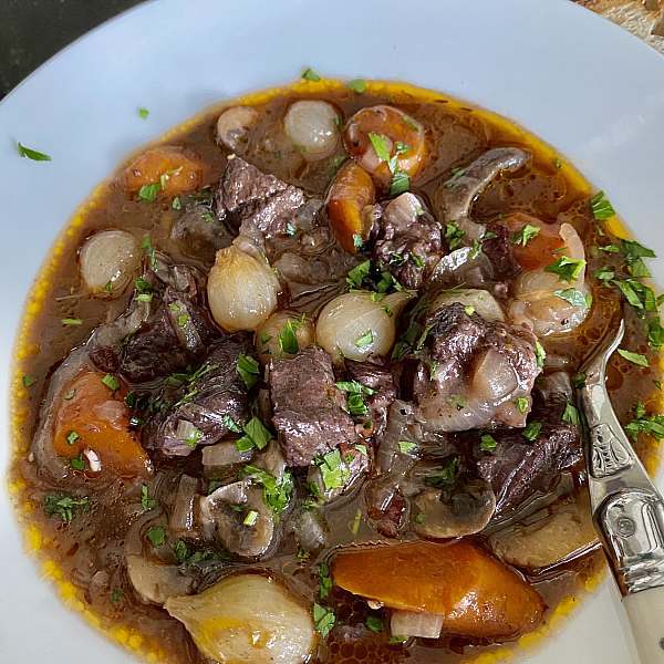 To make in advance, cook the stew and refrigerate. To serve, reheat to a simmer over low heat and serve with the bread and parsley.
