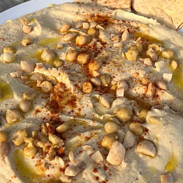 Drain the water and the chickpea skins that float to the top, leaving the chickpeas in the pan. Add cold water, stir vigorously to loosen more skins, and drain off the water and skins that float to the top, again leaving the chickpeas in the saucepan. Do this 5 or 6 times, until most of the skins are drained off. Drain the chickpeas, setting aside 2 tablespoons for the garnish and place the rest in the bowl of a food processor fitted with the steel blade. Add the garlic mixture, Tabasco, the ¼ teaspoon paprika, ¼ cup warm water, 1 tablespoon salt, and 1 teaspoon pepper and process until very smooth. Add the tahini and 2 tablespoons of olive oil and puree for one full minute, until creamy. Add 2 to 3 tablespoons of extra lemon juice (to taste), 1 teaspoon salt, and enough warm water (1 tablespoon at a time) to make the hummus the consistency of thick yogurt.