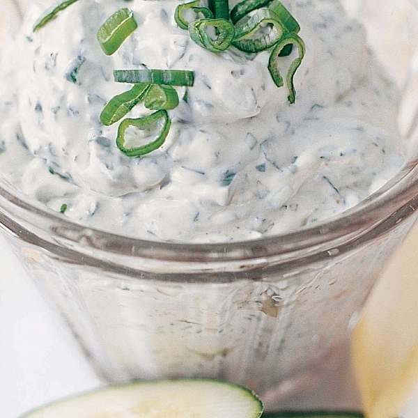 Place the cream cheese, sour cream, mayonnaise, scallions, parsley, dill, salt, and pepper in the bowl of food processor fitted with the steel blade. Pulse 10 to 12 times, until just blended, but not pureed. Serve at room temperature.