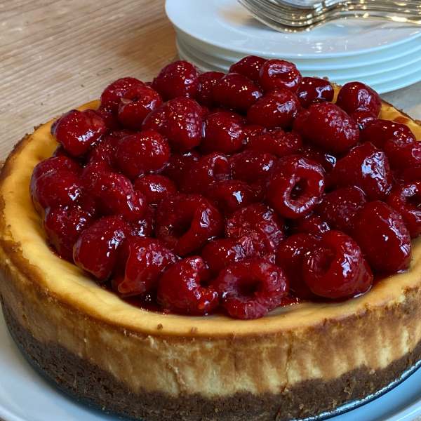 If you make the topping, melt the jelly in a small pan over low heat. In a bowl, toss the raspberries and the warm jelly gently until well mixed. Arrange the berries on top of the cake. Refrigerate until ready to serve.