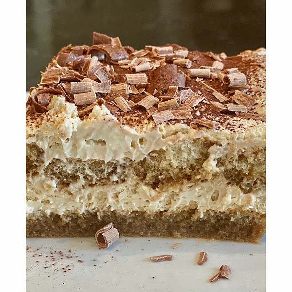Before serving, sprinkle the top with shaved chocolate and dust lightly with confectioners’ sugar, if desired.